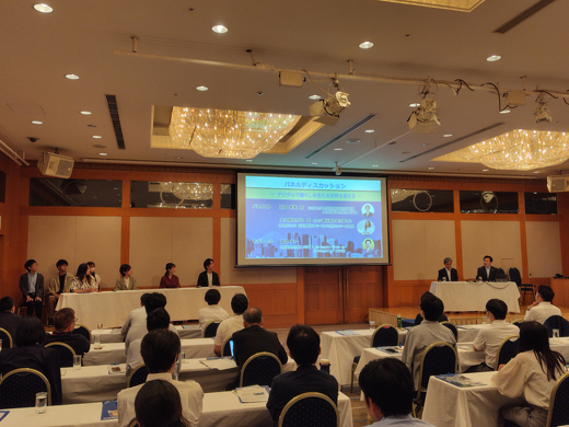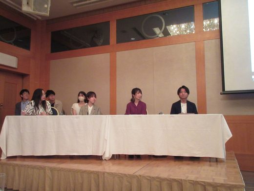 (株)クエスト 畠中氏をモデレーターとしてパネルディスカッションを行いました。パネリストとして安田幹事長と大久保講師、大久保あかね観光研究室の学生が参加し、SNSやアプリを活用した観光の新しいあり方に関して論議しました。