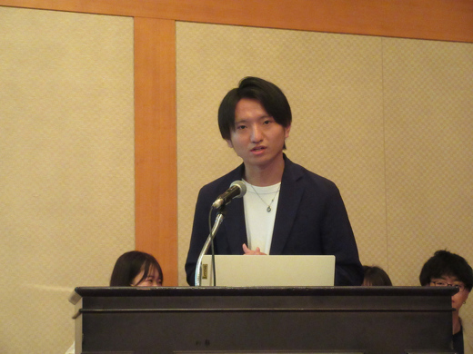 次に同研究室の大学生が登壇し、お茶を楽しむことをテーマとした観光「ティーツーリズム」促進のため、学生が作成した動画が投影され、セミナー会場が盛り上がる場面もありました。