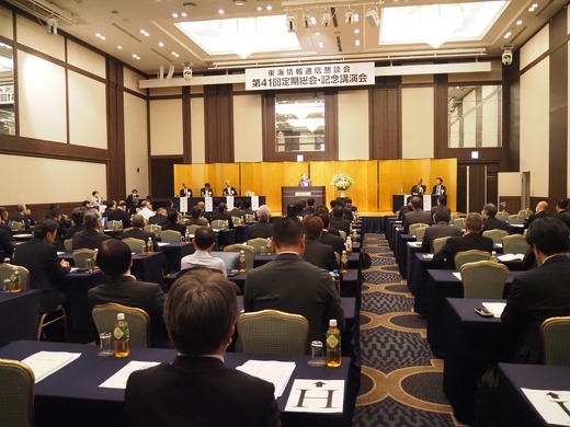 去る10月22日(水)、第41回定期総会がメルパルク名古屋(名古屋市東区)において開催されました。当日は、顧問の磯 寿生 東海総合通信局長及び小澤 学 株式会社NTTドコモ 東海支社長にもご臨席いただき、岩田 彰 会長をはじめ会員約130名の出席で盛大に執り行われました。
